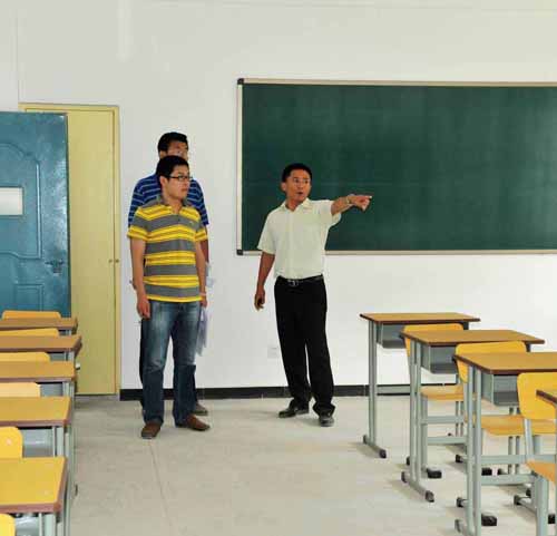 每间考试教室的桌椅是否齐备?空调声音是否合适?钟表是否准时……从6月21日上午开始,实验高中考务组已经开始组织工作人员检查各个考场的各个硬件设施。笔者看到,再小的细节也都是各个考场布置的重要环节:考场内的灯光照明、广播接收效果、窗帘的遮阳效果。在实验高中教学校长李超的带领下,考务工作人员每检查完一项,都会在检查表格上做好相应的标记。