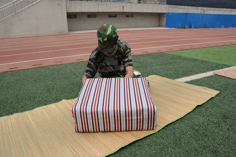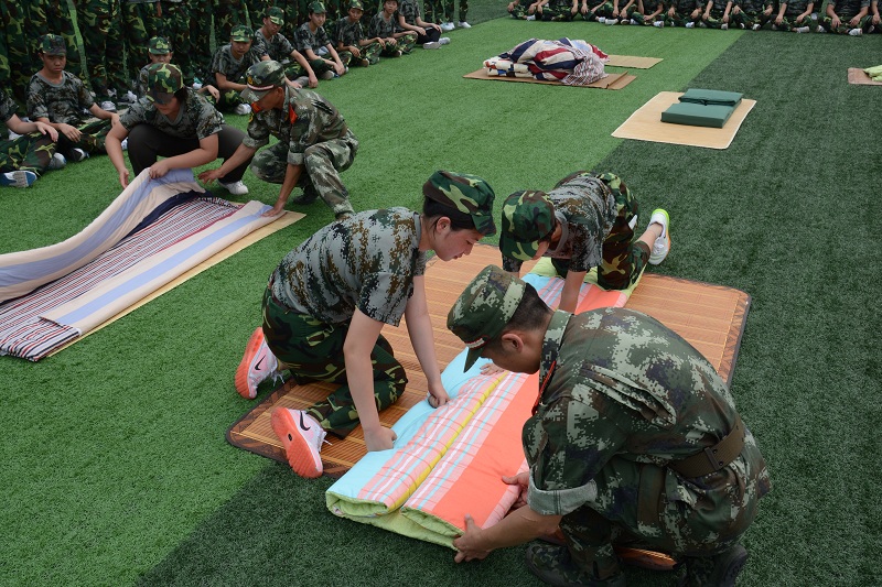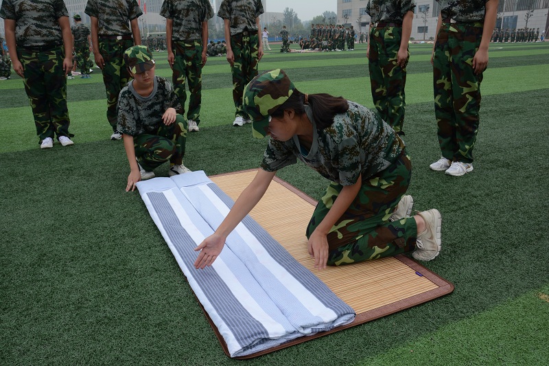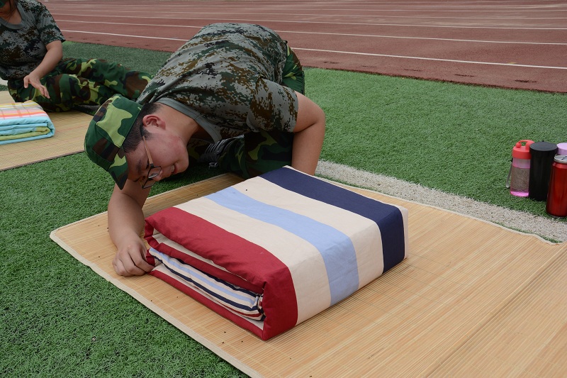 叠被比赛是军训中的一门课程,是内务整理难度较大的一项内容。通过叠被比赛,不仅让学生对军队内务整理有了深刻的了解,同时学到了内务整理的技巧,培养了同学们良好的生活、行为习惯,更重要的是从中学到了军人严于律己、一丝不苟的优良作风。