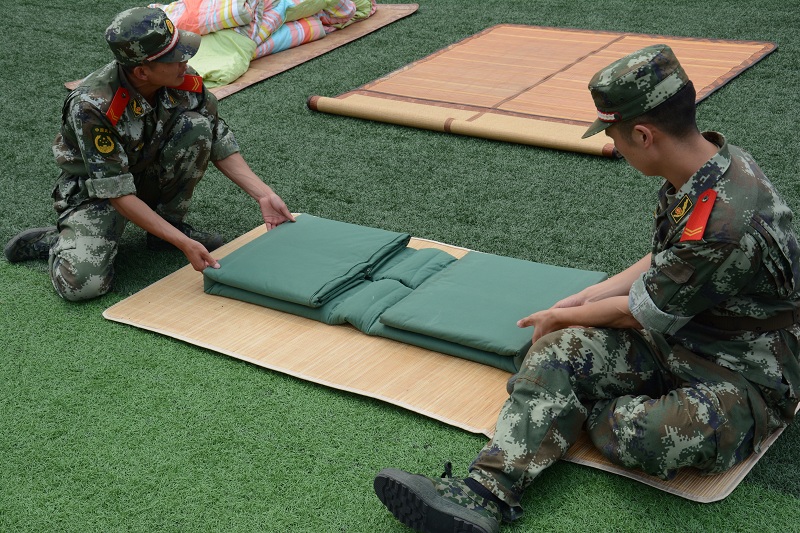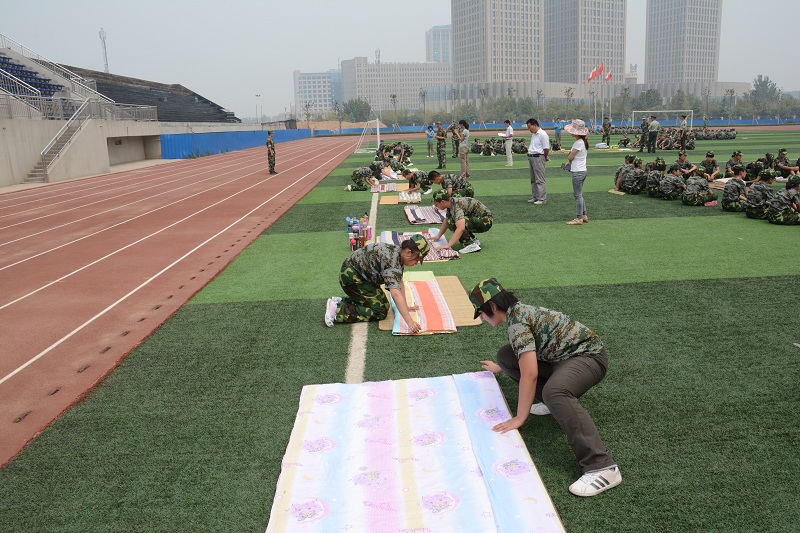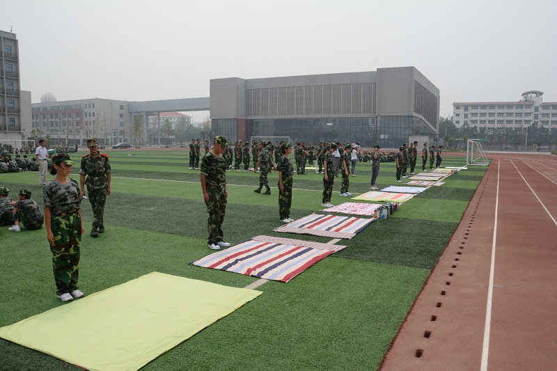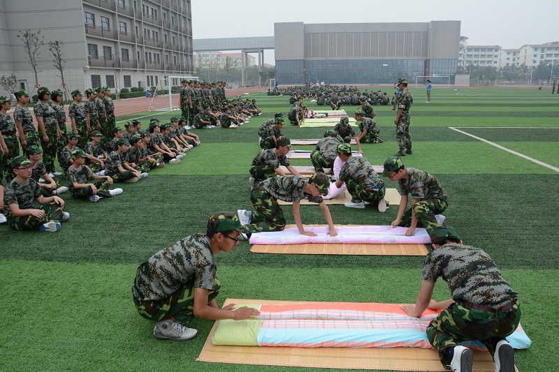 为进一步检验新生军训内务管理实效,培养学生的动手能力和生活自理能力,并为他们艰苦的军训生活增添乐趣,8月12日,我校在运动场举行了一场精彩激烈的叠被比赛。