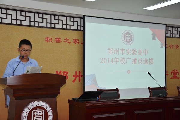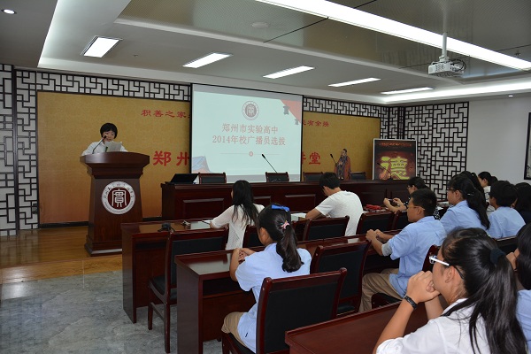 9月2日下午课外活动时间,郑州市实验高中德育处在行政楼三楼道德讲堂组织开展了校园广播站广播员选拔活动。此次活动的评委有刘继平主任、张华、等七位老师,共有40名同学参加了选拔。本次活动,严格按照“广播员选拔评分标准”进行打分。选拔比赛时,选手先进行自我介绍,然后读指定稿件。经过比赛和评委的认真裁决,十二位同学脱颖而出,成功被选拔为校园广播站广播员。