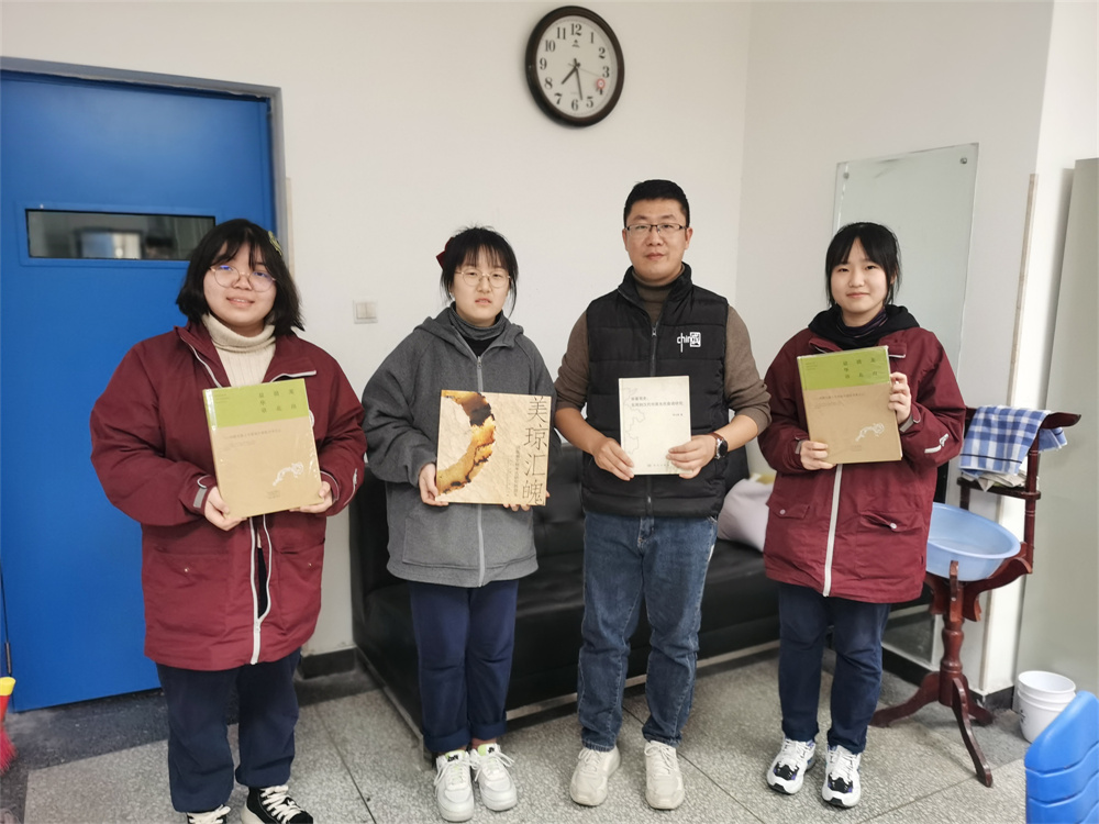 讲座结束后,周立刚博士还将携带的几本河南省考古研究院及其本人的著作发给对考古学感兴趣的实高学子,激励其树立梦想,全力以赴。高二年级孙钰雯同学在得到赠书时不禁兴奋地跳了起来,她激动地说:“我从初中开始就对考古学感兴趣,进入实高后通过校本课程上的考古课对考古有了进一步的了解,在今年暑假里还对比了北大、西大、吉大的考古学专业优势和录取分数线,非常感谢周老师的鼓励”。刘豫同学一直喜欢参观博物馆和探寻郑州市内散布的历史遗迹,研究性学习的主题是“惠济区内文化遗存的分布”,得到赠书的她很珍惜这次学习的机会,周老师的讲座再一次激发了自己对科技考古的浓厚兴趣,希望以后有机会能去考古基地进行相关的实习。