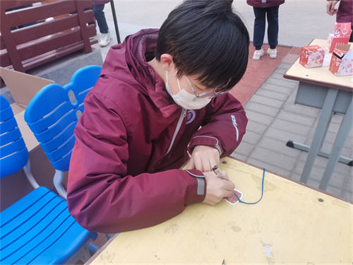 还有什么能比糖果更让人感到甜蜜的呢?那就是在糖果上加上祝福吧!活动期间,我们进行了一场甜蜜行动。倾心社的社员分不同的方向将带有祝福的棒棒糖送给遇到的人,广场、操场、餐厅、教学楼……甜蜜的味道从胃出发抵达心田,幸福的体验散布在校园的每个角落。