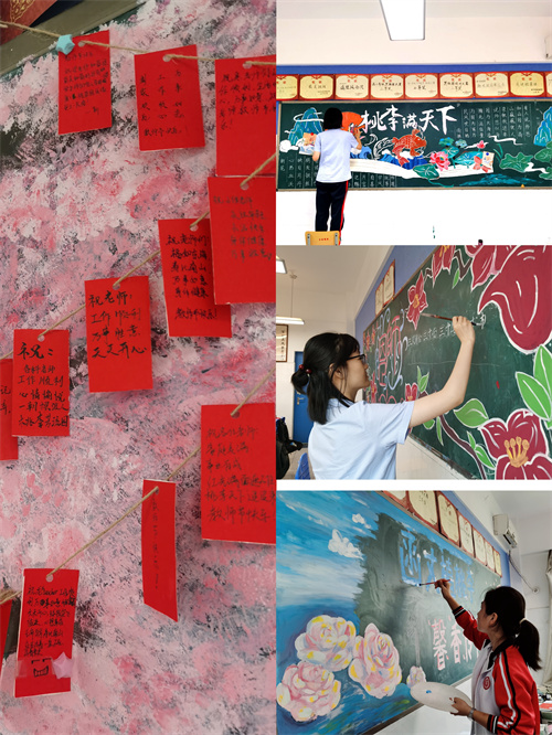 让每一幅画都传情,让每一面黑板都说话。“躬耕教坛,强国有我”是每一位教师坚定地誓言,“强国有我,不负韶华”是每一个实高学子对师恩最好的报答。
