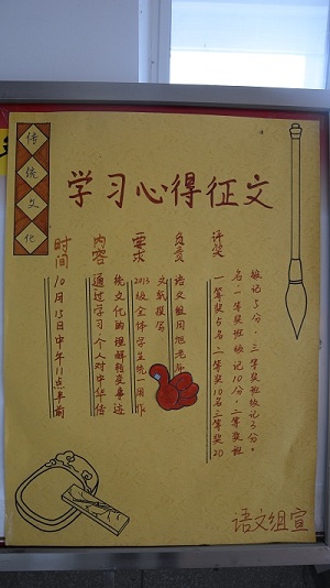 学校开展学习优秀传统文化心得征文比赛。各班学生积极投稿,共收到稿件300余份。