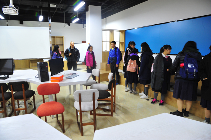 了解学校梗概之后,李超副校长带着交流团,深入茶艺室、图书馆、阅览室、击剑馆和教学区等地方亲身感受实高文化,并在参观场馆结束后,组织两个学校的学生进行座谈。