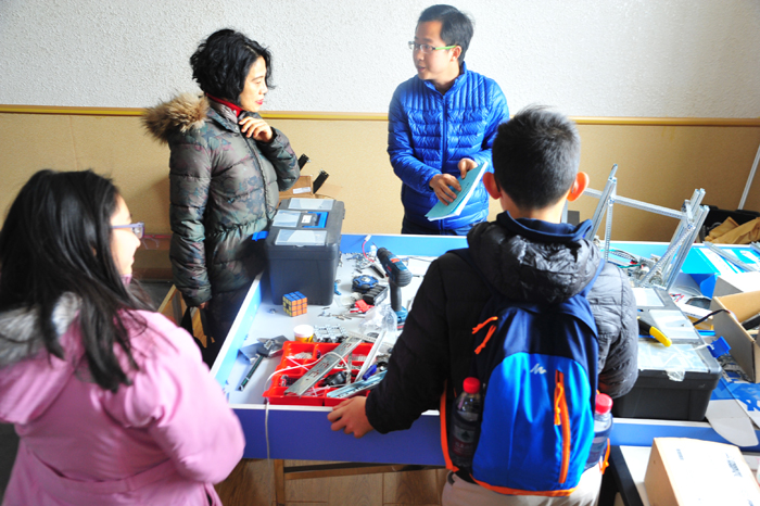 “我们从没见过这么大的操场”,“你平时最喜欢什么学科?”,“展板上,校本课程可真丰富,可以学茶艺,还有击剑,还有考古……”虽然身处不同的教育方式,但孩子们对于学习含义的理解和对不同学科的兴趣却极易获得共鸣,不到几分钟就聊成一片,不分你我。