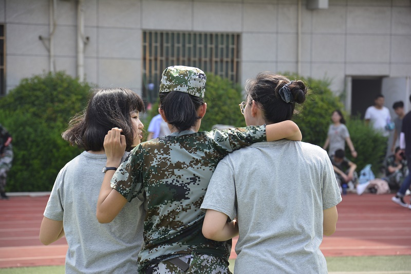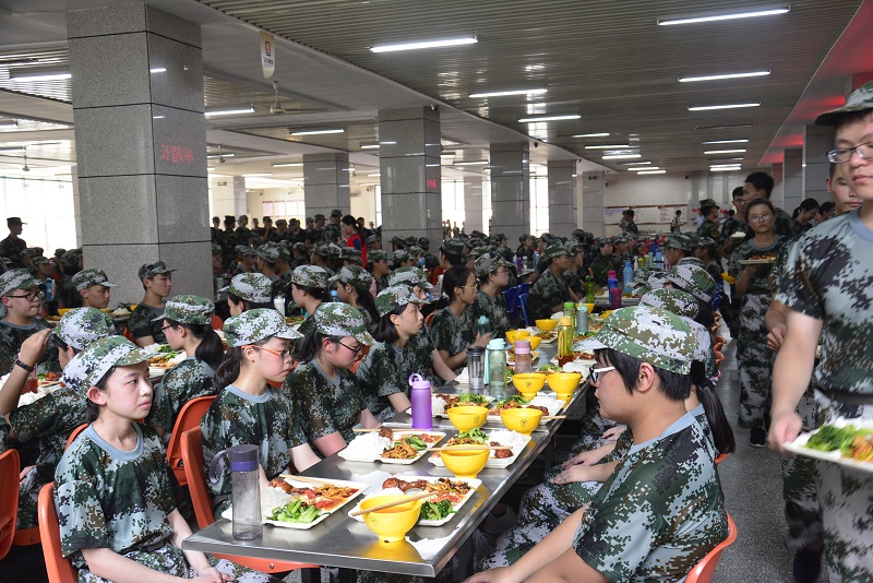 结束了开营仪式,在教官们的带领下,紧张充实的训练迅速展开。在酷暑之中,绿茵场上,迷彩方阵里响亮的口号此起彼伏,一切从零开始:稍息、立正、转体。做好基本动作是后续更高难度训练的前提,正如培养吃苦耐劳的精神是日后三年里艰苦奋斗的前提。站如松、坐如钟,令行禁止,每个动作整齐划一,每次落脚铿锵有力。实高大家庭的个别新成员们即使体力不支,休息片刻后也会勇敢地站到军训行列中来,就算倒下了,也要成为一座山,一道岭,这,才是军训的真正精神;这,才是开始高中生活的必备品质。
