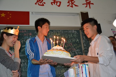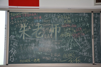 10月18日是高一实验一班副班主任朱瑞萍老师的生日。朱老师和实验高中的每一位老师一样,不仅在学习上对学生严格要求,并且在生活中也给与了学生无微不至的关怀,同学们都极其喜爱朱老师。