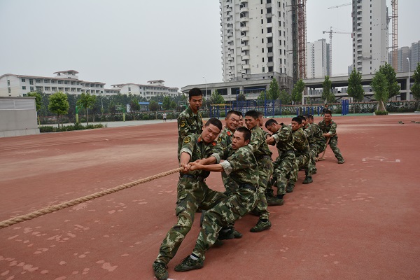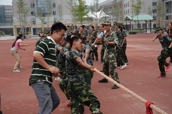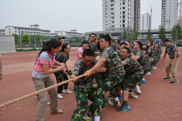 8月17日,郑州市的火热天气已然抵挡不住郑州市实验高级中学足球场上的激情,尤其是来自高一年级的科学三班、英才四班、创新一班和实验三班,因为就在今天,随着哨声一响,郑州市实验高级中学2015级新生军训拔河对抗赛的冠亚季军就要正式诞生了。