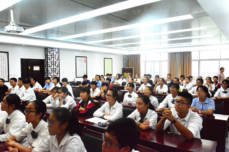 9月24日,郑州市实验高中的校本课程如期而至:报告厅里,杨雨霏老师带领学生们体验当演员的感觉,戏梦人生,如痴如醉;温馨的心理咨询室里陈桃和鲁帅老师通过一个个心理游戏帮助学生们如何把心理学运用在人际交往中;在崭新的通用技术教室里,张俊杰老师研发的神奇传感器引得学生一阵阵惊呼;在神秘的机器人教室里,学生们正聚精会神地听范忠传老师和牛宝乐老师讲述机器人技术,实高丰富多彩的校本课程开展得风生水起……但最吸引眼球的要数当天程通老师开设的《闪亮新主播——播音与主持艺术课堂》了。
