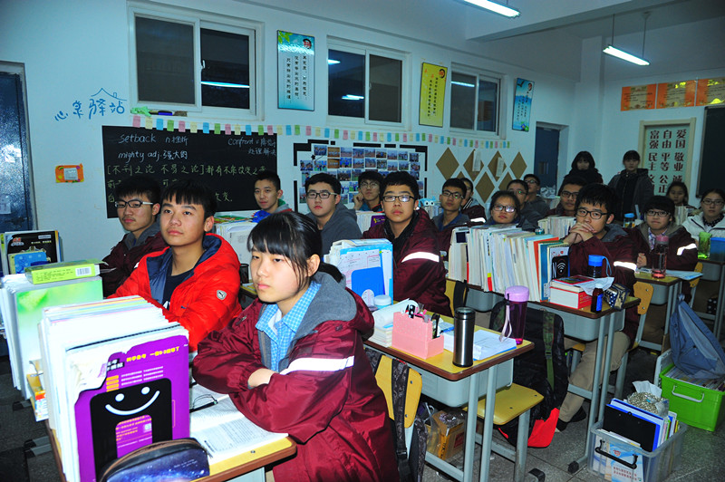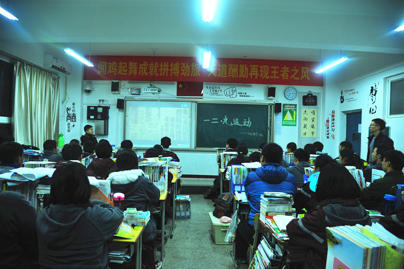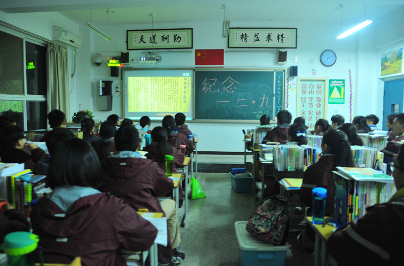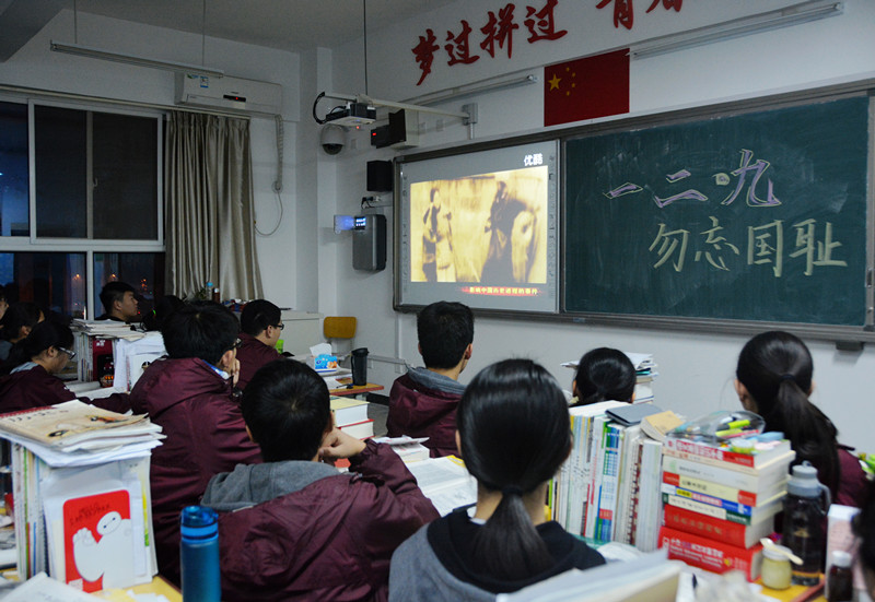 学校各个班级利用晚自习时间收看《 一二九运动纪录片》