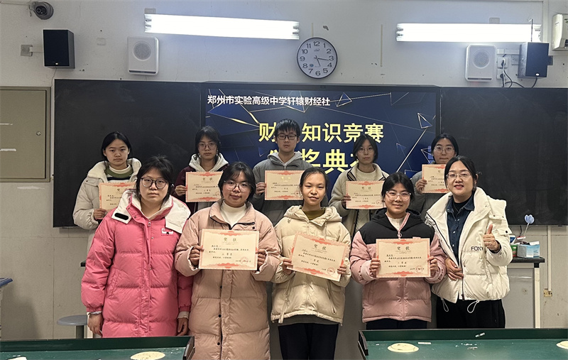 为丰富高中校园生活,提升学生综合素质,引导青少年关注经济生活,树立正确的金钱观与财富观,郑州市实验高级中学于2025年12月举办了首届“财经筑梦·智赢未来”高中生财经知识竞赛。本次活动在校团委和社团联合会的指导下,由学生社团轩辕财经社精心策划组织,吸引了来自全校各年级的众多学子积极参与。