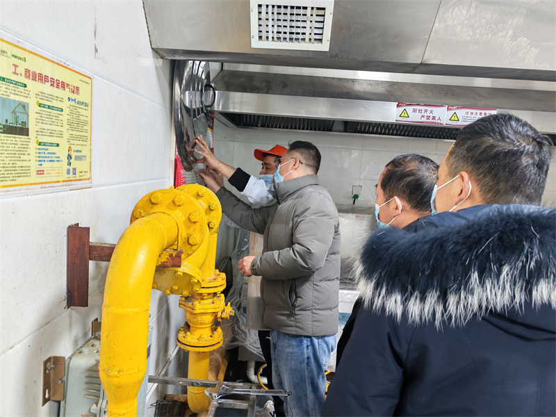 工作人员对餐厅燃气管道进行检测