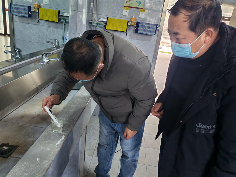 工作人员对学生宿舍楼进行水质检测