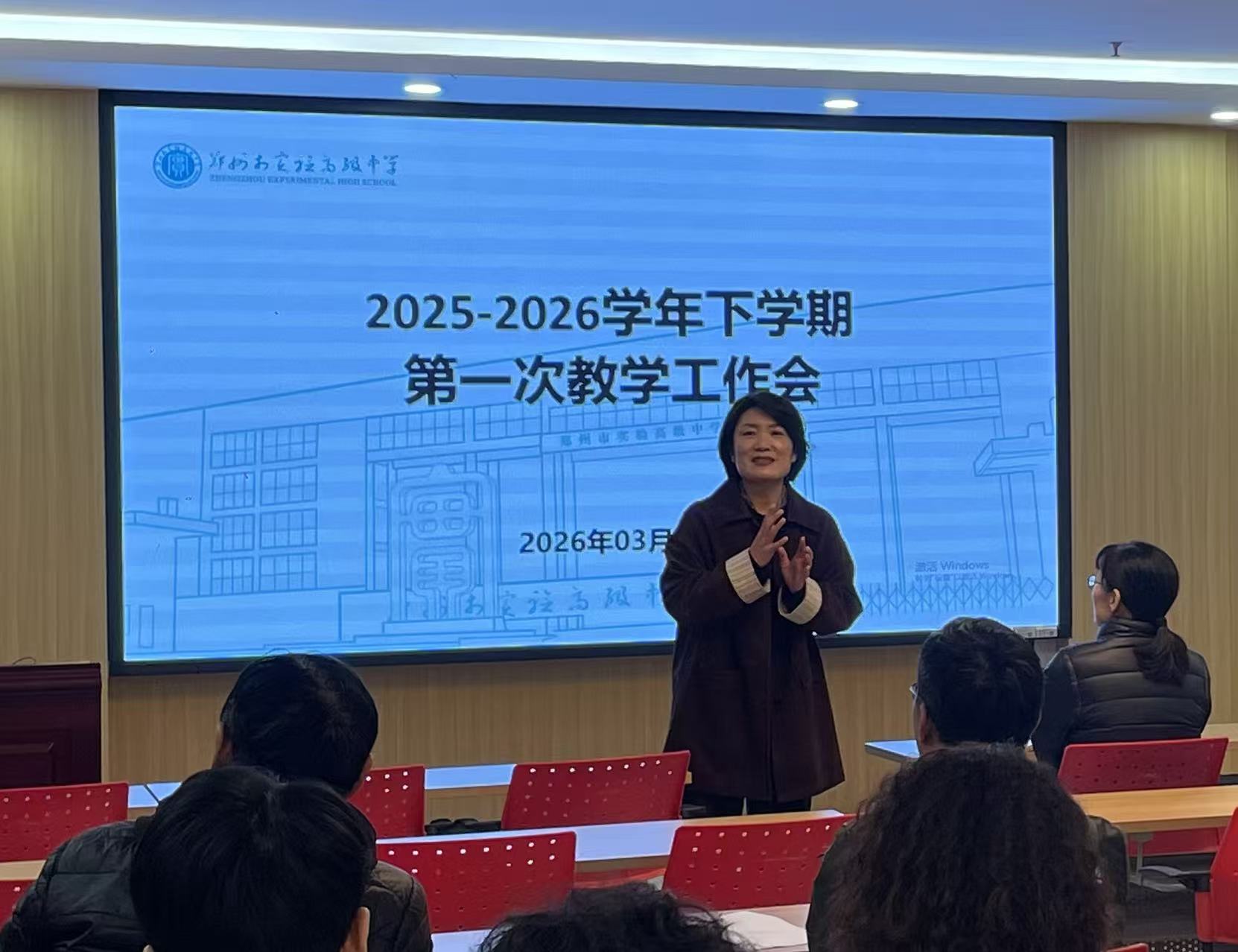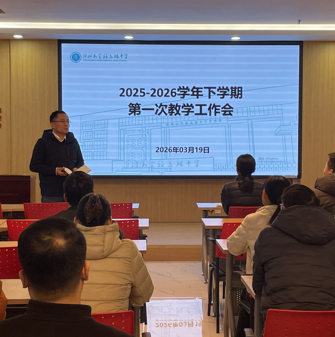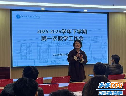 3月19 日下午,郑州市实验高级中学召开 2025-2026 学年下学期第一次教学工作会,会议由教务处负责人兰龙主任主持。各年级长、学科组长、备课组长参与此次会议。学校领导李超校长、刘继平副校长、张霞副校长到场指导工作。此次会议为新学期教学工作划重点、明方向,按下教学提质 “快进键”。