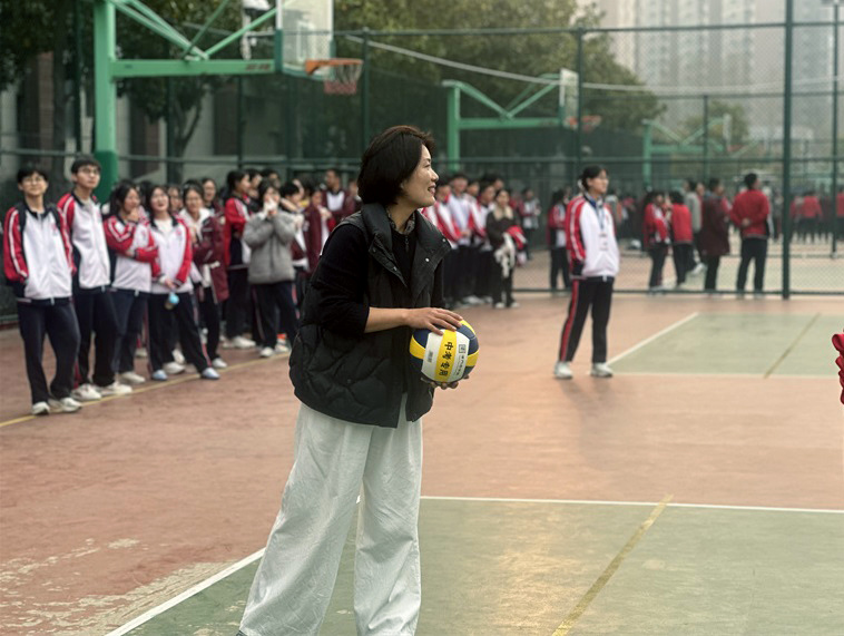 副校长张霞为排球赛开球