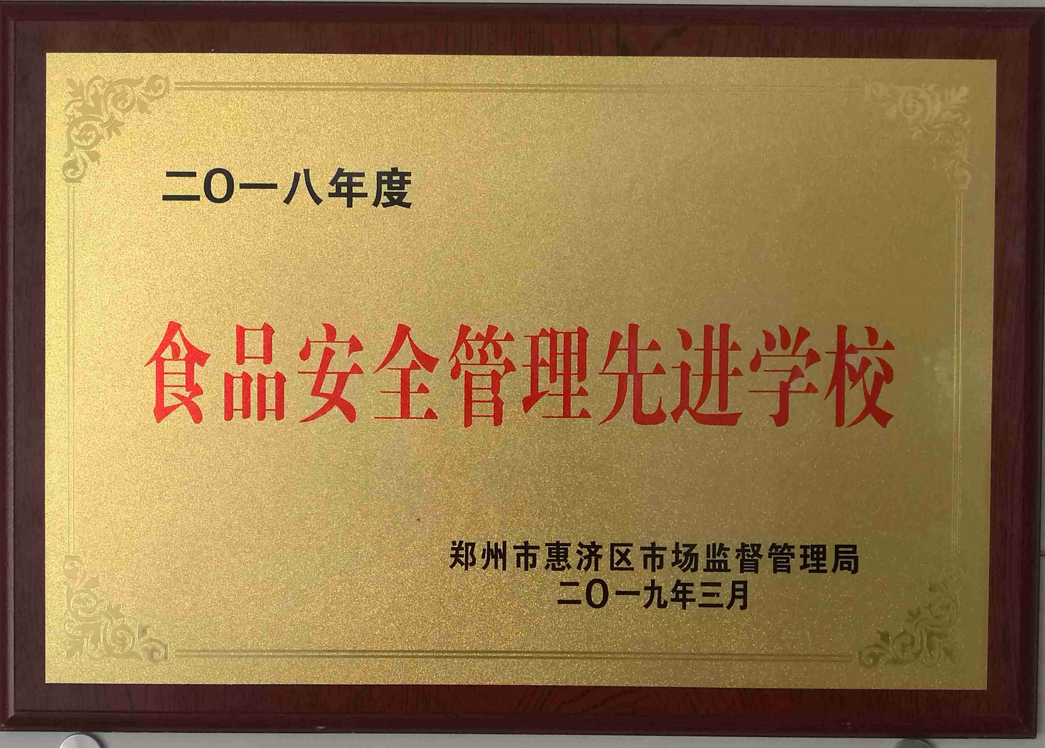 4月17日,在郑州市惠济区食品安全管理先进学校的评选活动中,郑州市实验高级中学喜获“食品安全管理先进学校”的荣誉称号。这是对该校食堂管理工作的充分肯定。