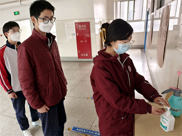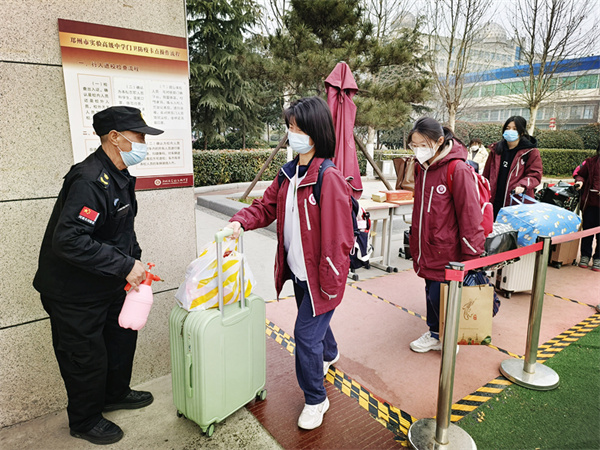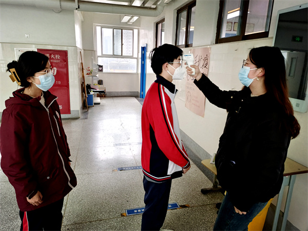 2月6日下午2时30分,学校东门外,学子已经自觉排成间隔一米的队伍。无论是校园环境整治,还是安全隐患排查;无论是教育教学,还是饮食住宿,为了迎接学子归来,学校做足了多方面的准备。