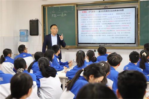 君子知教之所由兴,以生为本。随着“双新”教育教学改革持续深入开展,教师们的教育观念、学生观念也发生了相应的变革,本次送课活动的课堂都深刻地体现了学生为中心的教育理念,强调了立德树人的总目标,并以学科素养为指向,让学生课堂学习真正发生。路晓沛老师的《登岳阳楼》、《念奴娇·过洞庭》诗歌联读课引导学生由画入境,吟咏诗韵,领略两位诗人在个人极度悲苦的身世中仍保持的“位卑不敢忘忧国”的家国情怀。安宾宾老师在高一历史《亚非拉民族民主运动的高涨》一课中,以“驱散帝国主义的阴霾”为主线分为风起云涌、步履维艰、声震环宇三个篇章,生动展现了两次世界大战期间亚非拉人民争取民族独立和民族解放并进行民主改革的波澜壮阔的历程。娄新宛老师在《基因表达与形状的关系》一课中引入学生生活中常见的场景,利用图片和视频相结合的形式,引导学生学会寄予实验证据进行综合概括的思维方法。