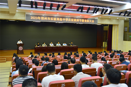 为了表达对全体教职工的敬意,弘扬学校教师立德树人、爱岗敬业之美德,在第39个教师节来临之际,9月8日下午,郑州市实验高级中学全体教职工齐聚学校报告厅举行第39个教师节庆祝表彰活动,感恩辛勤耕耘,弘扬榜样精神,凝聚实干力量。