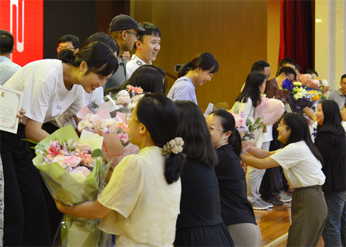 会议首先由学校班子成员宣读表彰决定,对校级优秀班主任、优秀共产党员、优秀社团指导老师等优秀个人进行表彰。榜样引领前行,时代催人奋进。在激昂的颁奖乐和热烈的掌声中,全校80多位获奖代表上台领奖。
