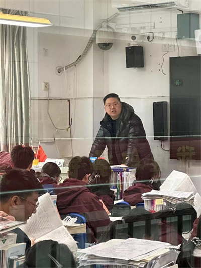 他,就是高三语文组的董晶淼老师。讲台上,他撑住的双手就是身正为范的最佳代言词。