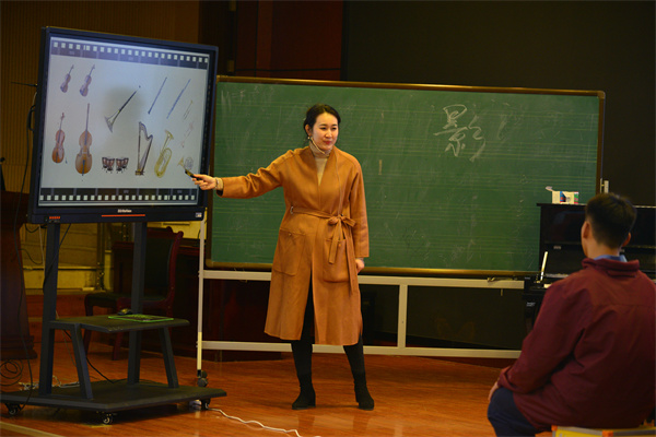 本次活动分为课堂观摩、评课、专题讲座三个环节。首先由清华附中郑州学校的贺佳颖老师带来的中国舞蹈音乐《阿细跳月》。伴随着优美的音乐,贺佳莹老师用优美的舞姿把学生置身到了彩云之南。同学们紧跟着老师的节奏沉醉其中,贺老师的这节舞蹈音乐鉴赏课,围绕音乐要素,节奏节拍、旋律等进行各种情境的设置,使同学们多角度感受音乐与舞蹈的关系。整节课逻辑清晰,亮点颇多,在带领同学们领略音乐魅力的同时也弘扬了我们民族音乐的艺术价值。来自郑州市实验高级中学的杨雨霏老师的中国影视音乐《声与影》精彩纷呈。杨老师通过《百鸟朝凤》电影音乐与画面,引导同学们感知民族音乐交响化,从而唤醒学生对中华传统文化的追求与热爱。整节课脉络清晰,教学层次分明,课堂环节安排合理,环环相扣,层层递进,课堂氛围融洽。