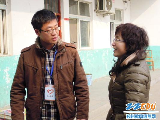 志愿者和众兴小学老师交流孩子们的学习情况