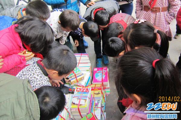 孩子们围在图书周围欣喜不已