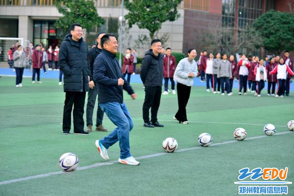 仪式推向高潮,学校领导集体移步绿茵场,为本次球类联合赛开球。随着足球在脚下划出一道道流畅弧线,飞向赛场各处,现场瞬间爆发出雷鸣般的欢呼与掌声。这一脚开球,不仅标志着郑州市实验高级中学球类联合赛正式启动,更承载着学校对学子们 “在运动中强健体魄,在竞争中学会成长” 的殷切期望。